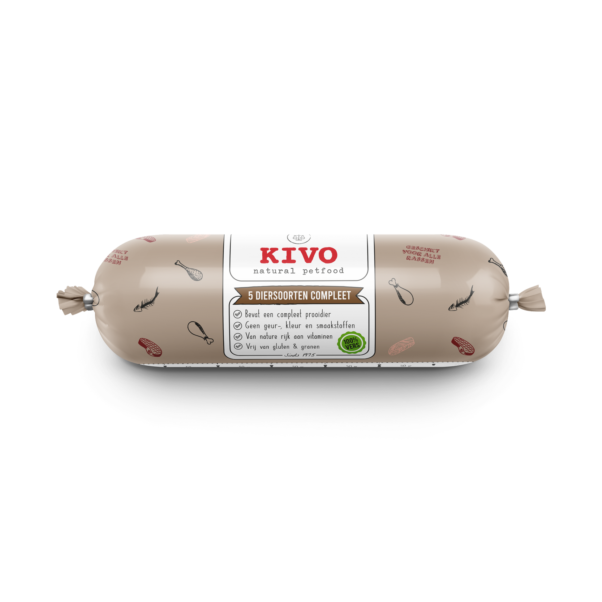 KIVO 5 diersoorten compleet vers vlees voor honden.