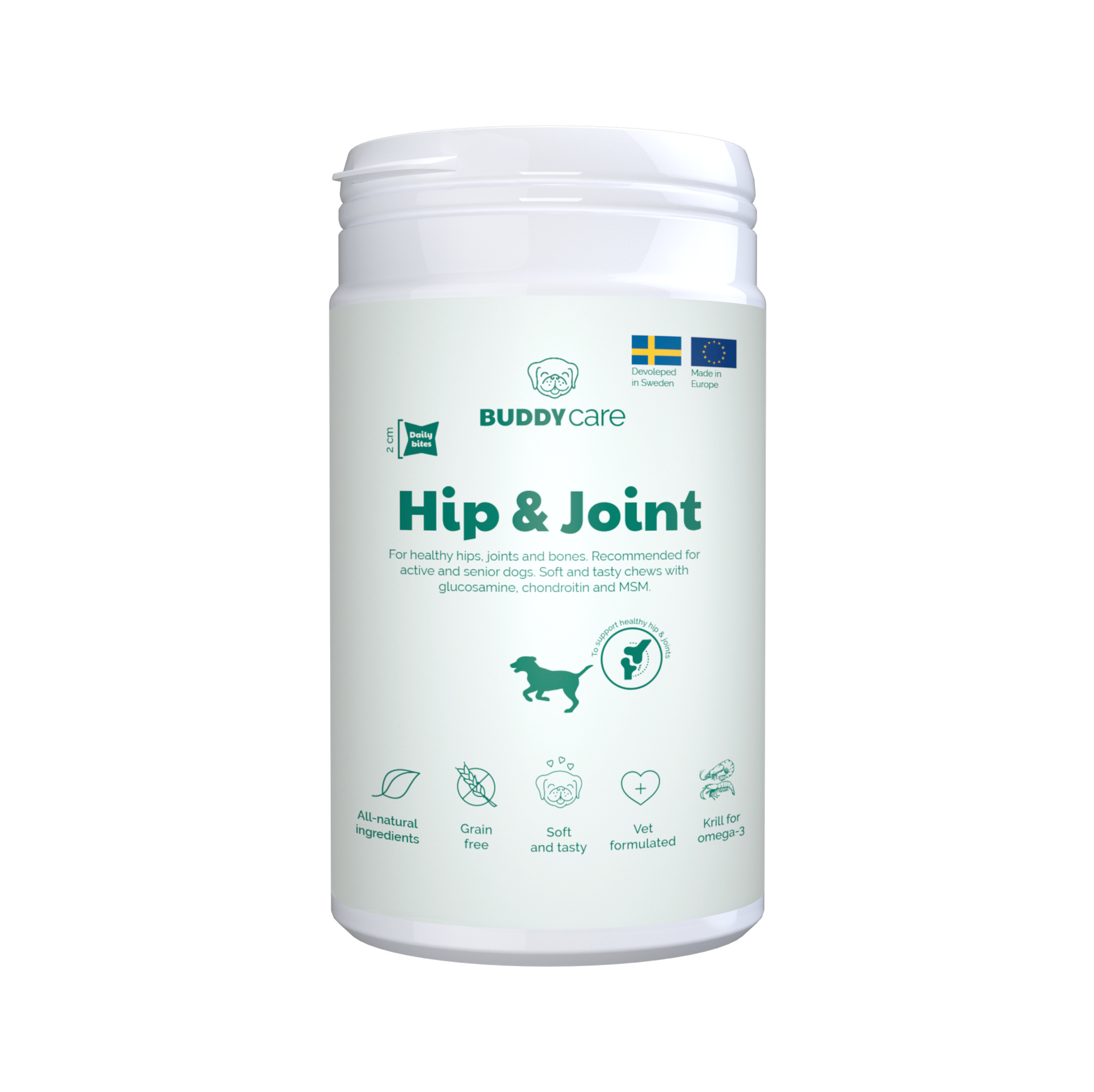 Natuurlijk voedingssupplement met MSM, chondroïtine en glucosamine - ingrediënten waarvan bekend is dat ze gezonde botten, ligamenten en gewrichten bevorderen.