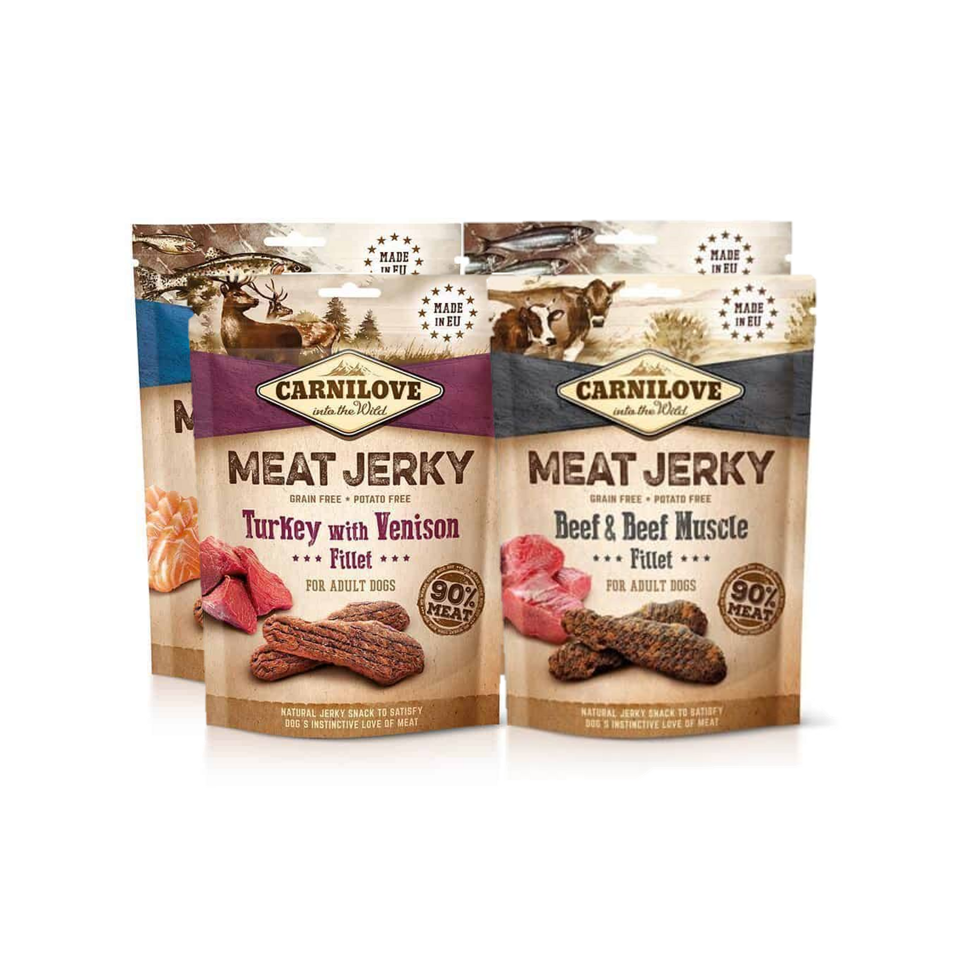 Carnilove Jerky Filet snack voor volwassen honden.