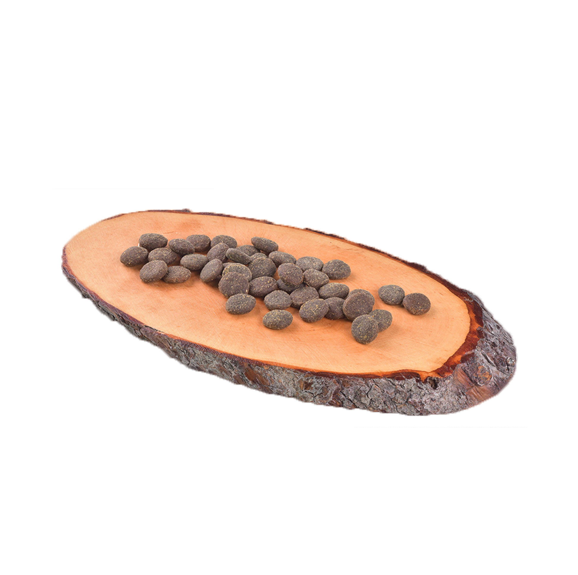 SAMENSTELLING: verse kalkoen (60%), erwten, kikkererwten, gedroogde appels, kippenvet (geconserveerd met tocoferolen), rode linzen (4%), pompoen, zalmolie (2%), lijnzaad (2%), natuurlijke aroma’s, gehydrolyseerd gisten (Saccharomyces cerevisiae, 1%), montmorilloniet (0,5%), Lemna-eiwit (0,5%), gedroogde peren (0,3%), gedroogde duindoorn (0,2%), gedroogde gemberwortel (0,1%), gedroogde bosbessen (0,1%), gedroogde rozemarijn (0,1%), gedroogde veenbessen (0,1%), gedroogde tijm (0,1%), glucosamine (0,03%), groenlipmossel (0,025%), chondroïtinesulfaat (0,023%), biergist (bron van mannan-oligosachariden, 0,017%), cichoreiwortels (bron van fructo-oligosachariden, 0,015%), Mojave-yucca (0,011%). ANALYTISCHE BESTANDDELEN: ruw eiwit 28,0 %, vetgehalte 19 %, vocht 10,0 %, ruwe as 7,8 %, ruwe vezel 4,5 %, calcium 1,3 %, fosfor 0,9 %, sodium 0.25%, omega-3 fatty acids 1.5%, omega-6 fatty acids 3.6%, EPA (20:5 n-3) 0.15%, DHA (22:6 n-3) 0.2%. VOEDINGSSTOFFEN PER 1 KG: vitamin A (3a672a) 22,000 I.U., vitamin D3 (3a671) 1,600 I.U., vitamin E (3a700) 550 mg, vitamin C (3a312) 300 mg, taurine (3a370) 1,500 mg, L-carnitine (3a910) 60 mg, choline chloride (3a890) 1,800 mg, niacinamide (3a315) 20 mg, biotin (3a880) 0.7 mg, zinc (3b606) 95 mg, iron (3b106) 80 mg, manganese (3b504) 40 mg, iodine (3b201) 0.75 mg, copper (3b406) 17 mg, selenium (3b810) 0.2 mg.