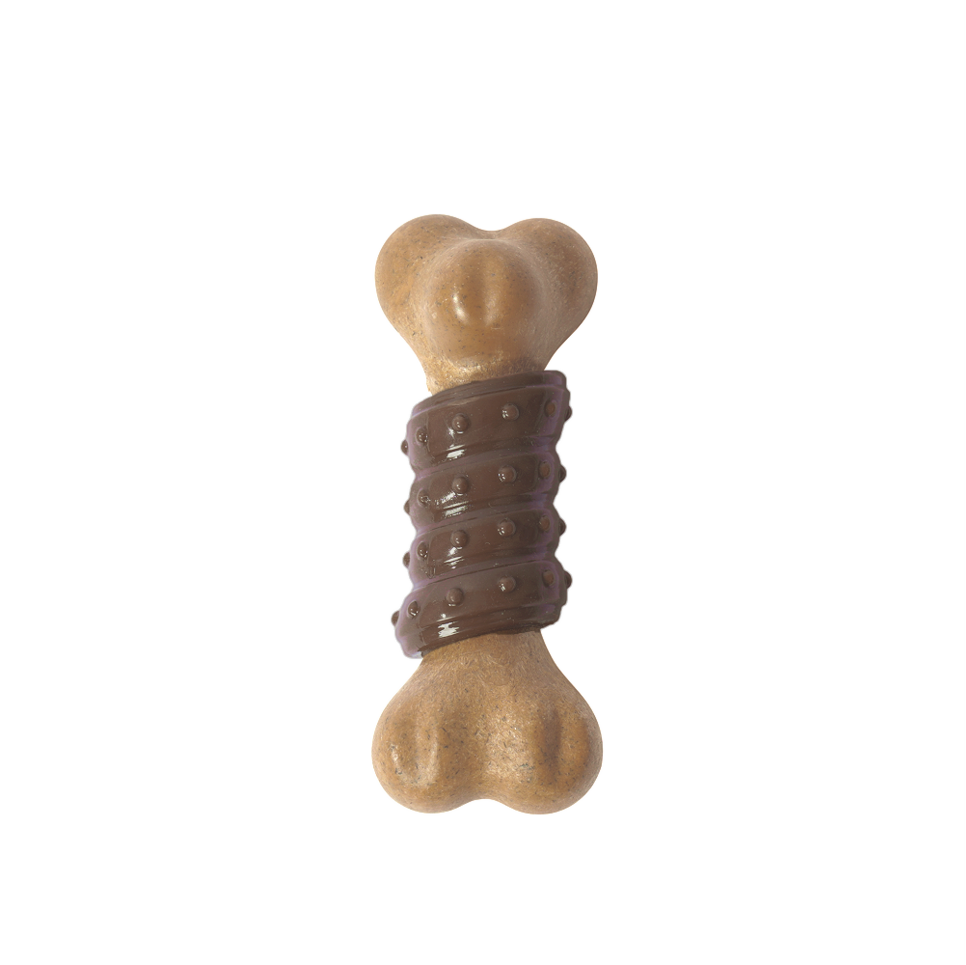 Het speeltje is gemaakt van duurzaam nylon en natuurlijk dennenhoutmeel, perfect voor fervente kauwers. Het biedt een veilige en langdurige kauwervaring en bevordert tegelijkertijd de gezondheid van het gebit van uw hond.
