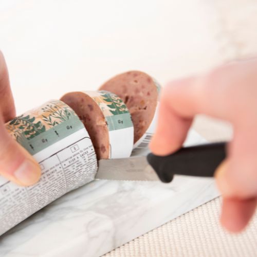 Wat maakt een maaltijd altijd beter? Zoveel mogelijk vlees. Daarom hebben wij een rol gestoomd vlees gemaakt van twee gezonde smaakmakers: rundvlees & kippenvlees. Doordat de worst langzaam gegaard is in de oven is ‘ie stevig en kun je er gemakkelijk plakjes van snijden. Je kunt ‘m op een plankje serveren maar handiger is om het gewoon in de voerbak te deponeren. Het is een veelzijdig product, want je kunt er ook gezonde trainertjes van maken. Geschikt voor alle kwispelaars, van jong tot oud.