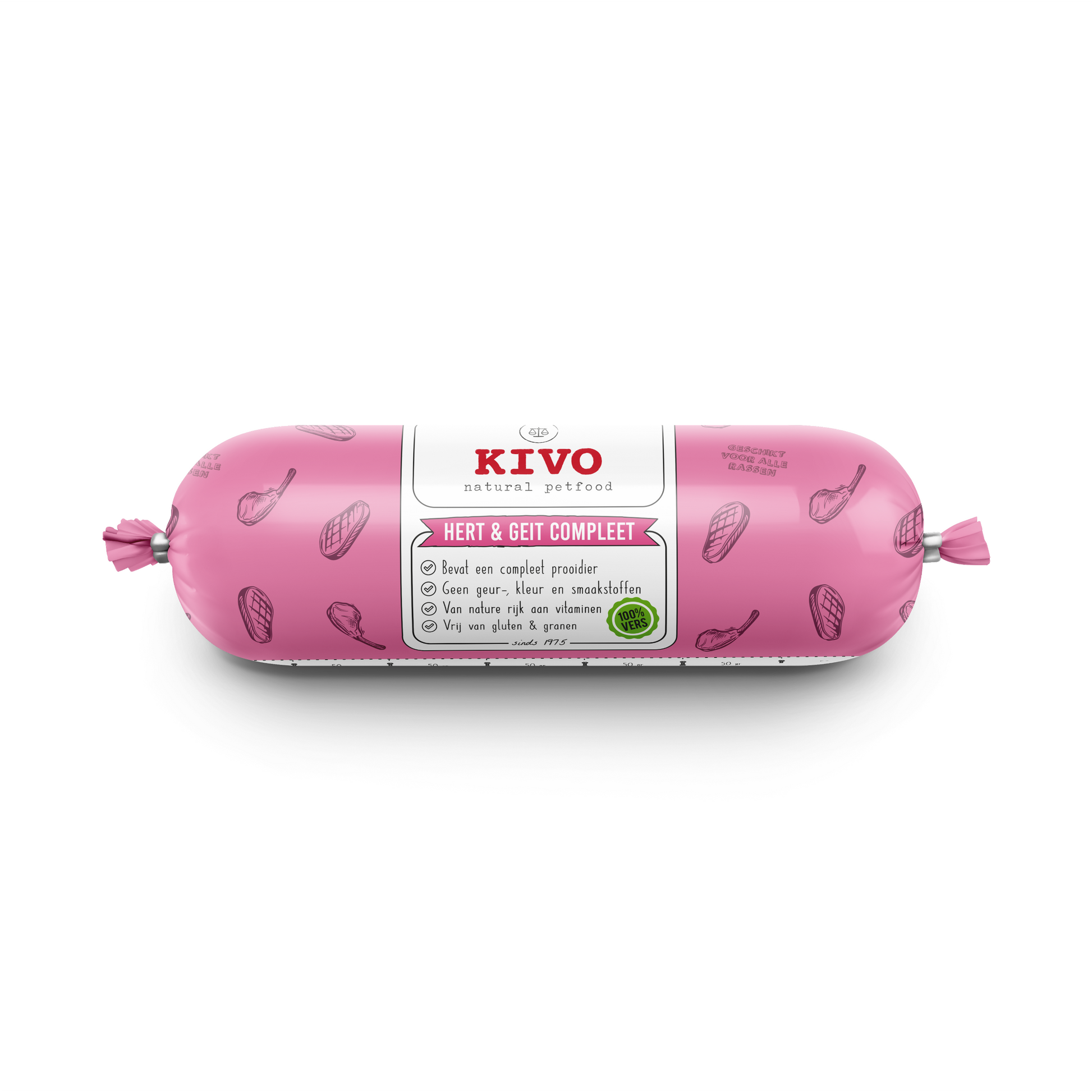 Een worst om wild van te worden, met een heerlijke blend van rood vlees. Sappig hertenvlees gecombineerd met de volle smaak van geitenvlees. Het hertenvlees wordt geschoten in het wild en is daardoor super-mals. Geitenvlees staat bekend om zijn subtiel pikante tonen. Voeg deze twee soorten samen in een jasje en je hebt een edele maaltijd in de voerbak liggen. Ambachtelijk gemaakt, zonder gedoe, rechtstreeks uit de Kivo fabriek in Veldhoven.