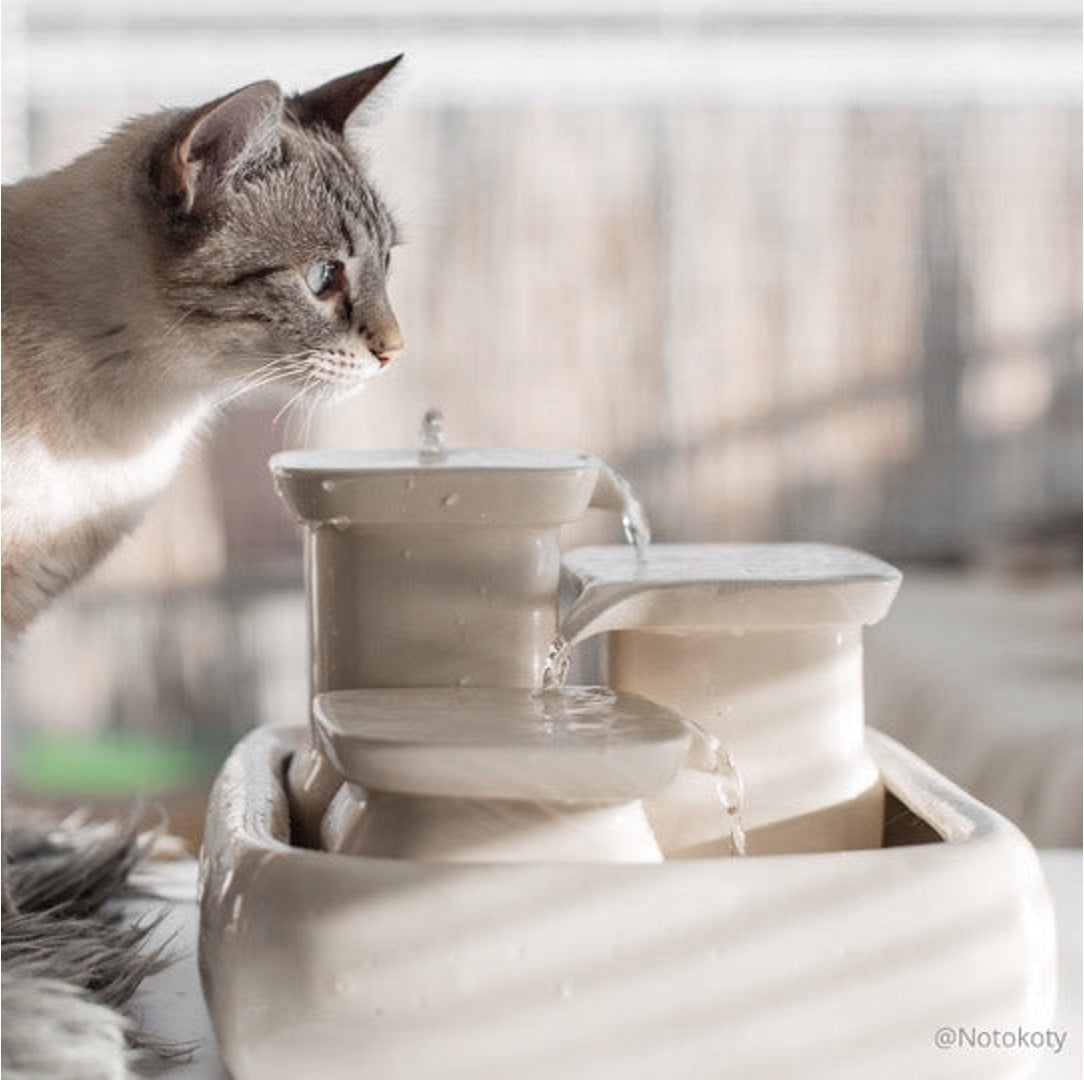 Katten staan erom bekend slechte drinkers te zijn. In de natuur halen ze het grootste deel van hun vochtbehoefte uit prooien, waardoor ze van nature minder snel naar stilstaand water grijpen. Deze stijlvolle keramische drinkfontein speelt hier perfect op in: het constant stromende water wekt de nieuwsgierigheid van je kat en moedigt haar aan om meer te drinken. Voldoende water drinken is essentieel voor gezonde nieren en urinewegen.