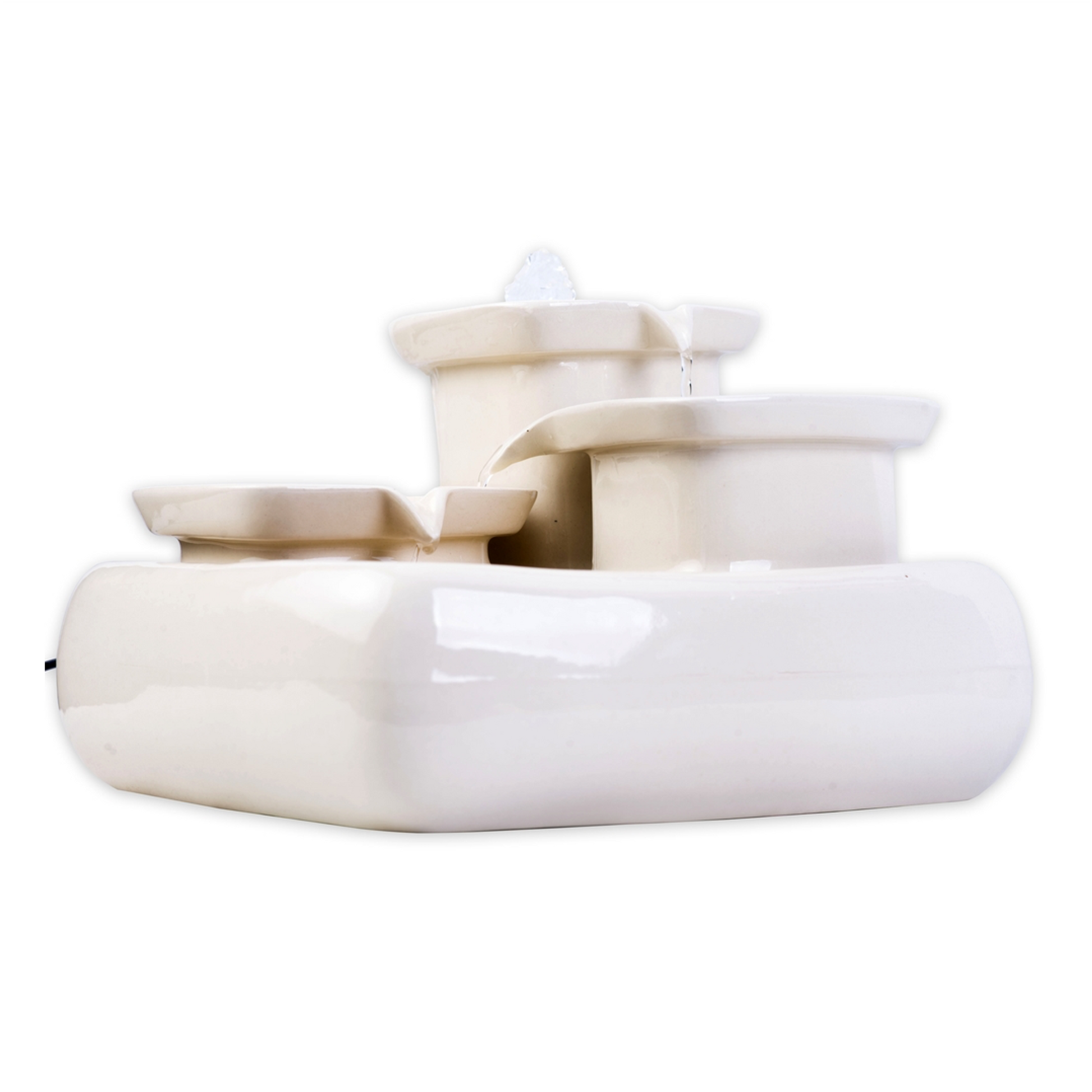 De fontein biedt vier verschillende drinkhoogtes, zodat elke kat haar favoriete manier van drinken kan vinden. Of ze nu houdt van zacht borrelend water of een klein stroompje. Dankzij het duurzame keramiek is de fontein niet alleen mooi, maar ook hygiënisch. Keramiek is namelijk antibacterieel, dit betekent dat bacteriën geen kans krijgen om zich te nestelen zoals bij bijvoorbeeld plastic drinkfonteinen of waterbakjes.