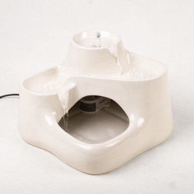 De fontein biedt vier verschillende drinkhoogtes, zodat elke kat haar favoriete manier van drinken kan vinden. Of ze nu houdt van zacht borrelend water of een klein stroompje. Dankzij het duurzame keramiek is de fontein niet alleen mooi, maar ook hygiënisch. Keramiek is namelijk antibacterieel, dit betekent dat bacteriën geen kans krijgen om zich te nestelen zoals bij bijvoorbeeld plastic drinkfonteinen of waterbakjes.