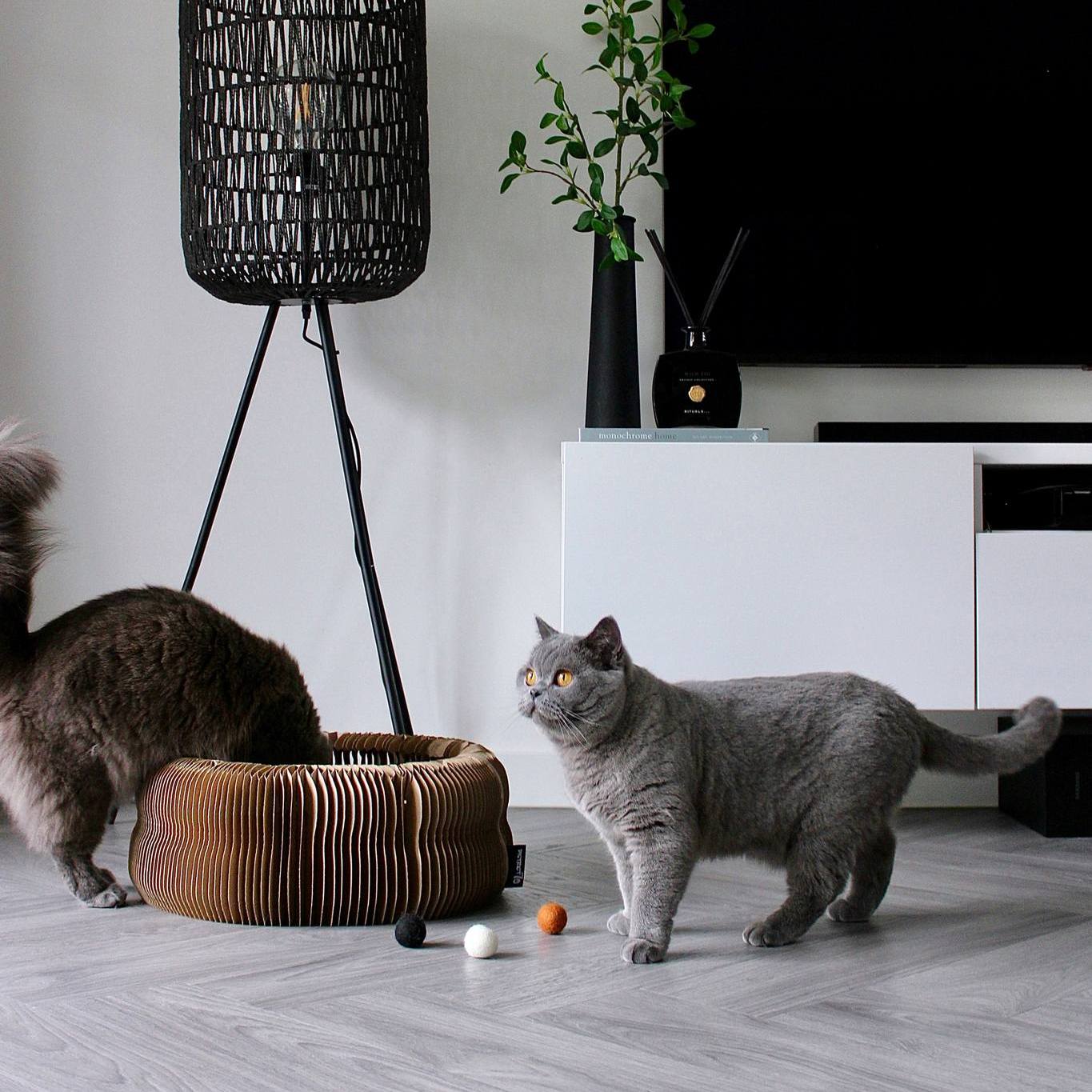 ✓ Heeft een 3-in-1 functie: opvouwbare kartonnen kattenmand voor slapen, spelen en krabben.