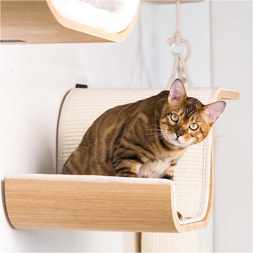Met Scratch 70 kan je alle kanten op: hang hem laag op als je katten nog klein zijn of wat ouder. En voor actieve en speelse katten hang je hem natuurlijk zo hoog mogelijk op, want dan kunnen ze er zelf naartoe klimmen via de Wall of Rebels Steps, Horizon, Ladder of Bridge. Of gebruik deze krabplank als verbindingsstuk tussen bijvoorbeeld slaapmand Oval Office en slaapplank Curve 70.