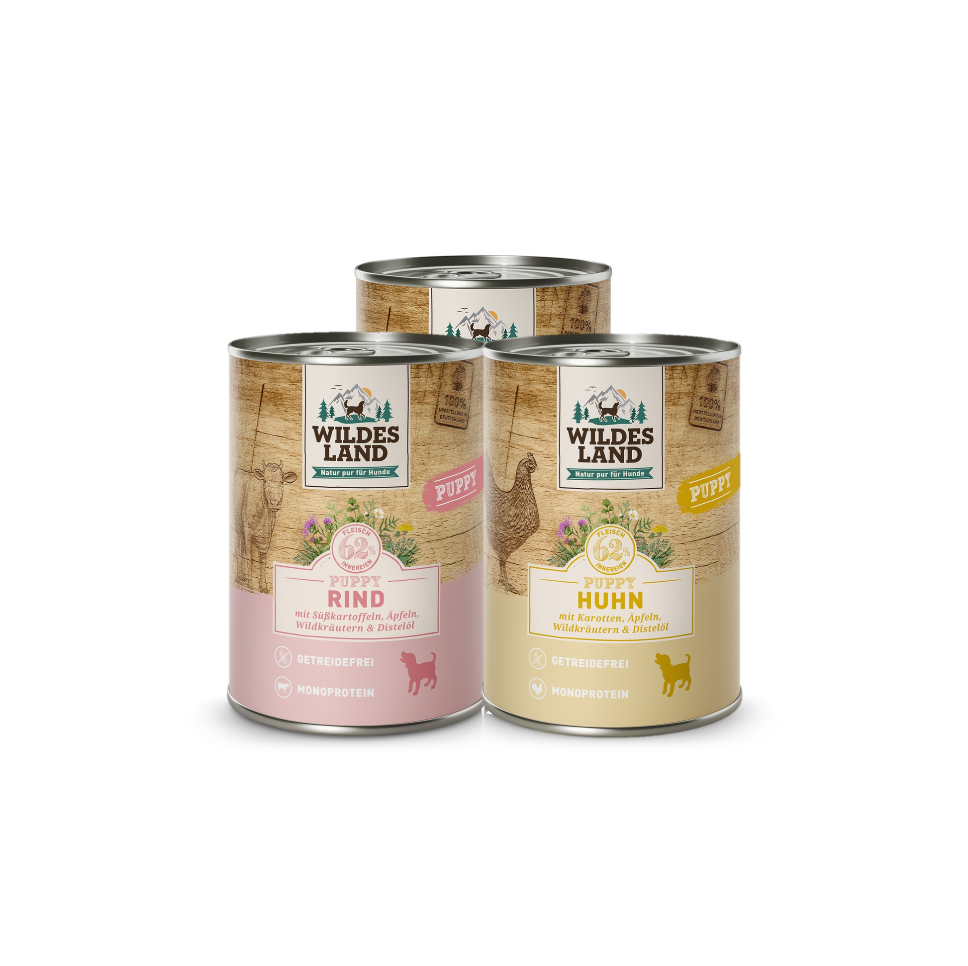 De voeding van Wildes Land bevat geen kleurstoffen, smaakstoffen of conserveringsmiddelen. Alleen maar pure natuur in de voerbak. Het natvoer wordt in Duitsland geproduceerd, zonder dierenproeven. Dit recept is ideaal voor opgroeiende honden van alle rassen van 2 tot 12 maanden oud.